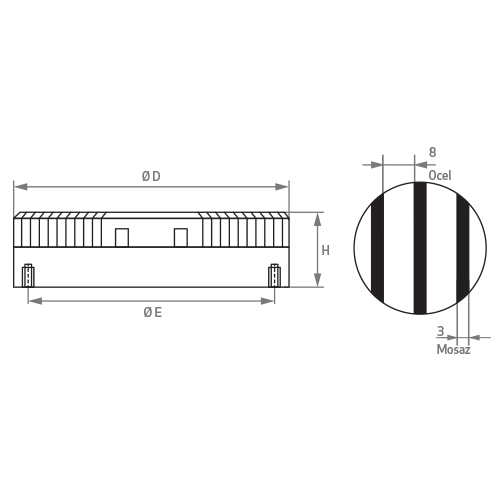 - Pólová rozteč: T11 8+3 mm (ocel/mosaz)